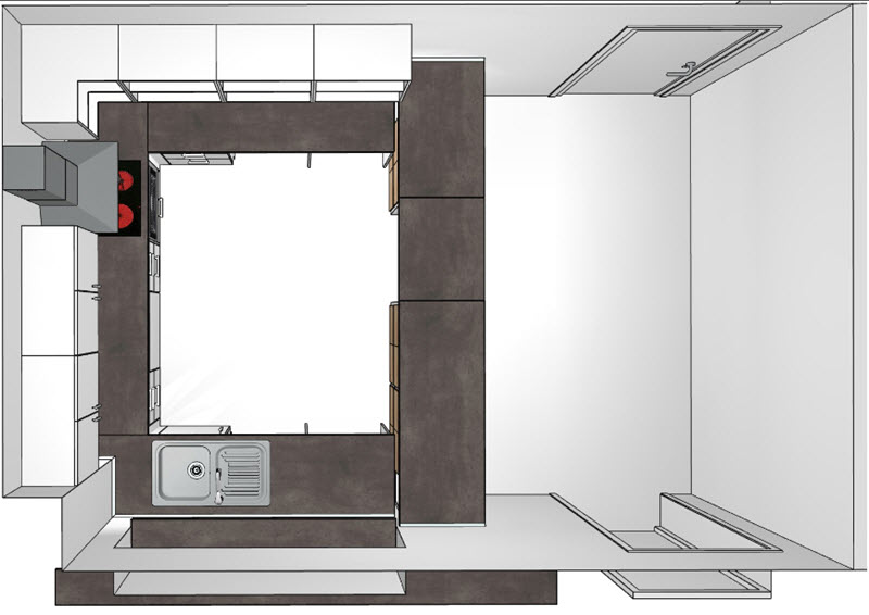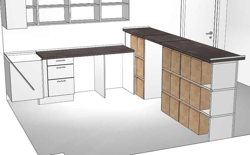 Für die neue Küche wurde eine komplette Wand herausgerissen und durch einen Tresen ersetzt, durch den die Küche über eine Klappe betreten werden kann. Dadurch ist ein quadratischer Raum entstanden, der zum einen sehr funktional ist und nun einen Tresen für Gäste und einen Tresen zum Innenraum für die Mitglieder besitzt. Zum Anderen ist dadurch sehr viel Stauraum insbesondere für Getränkekisten entstanden.